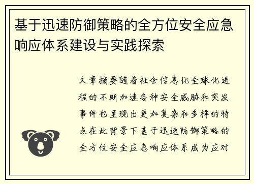 基于迅速防御策略的全方位安全应急响应体系建设与实践探索